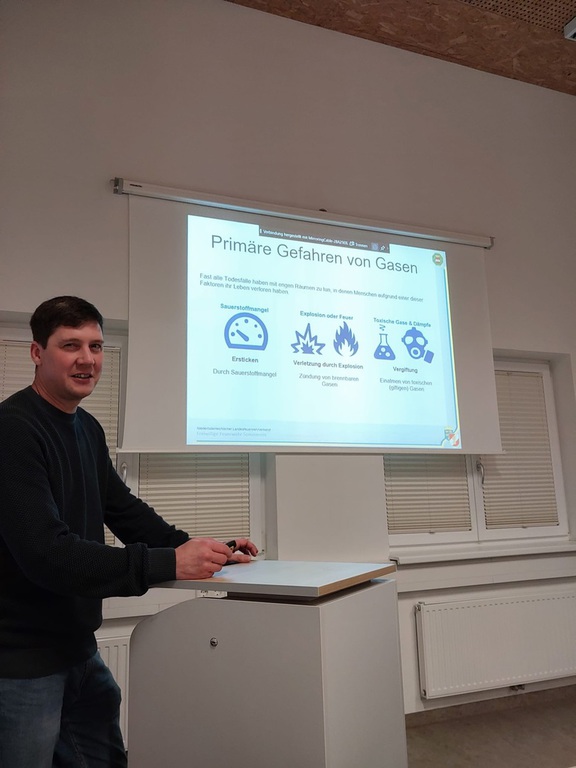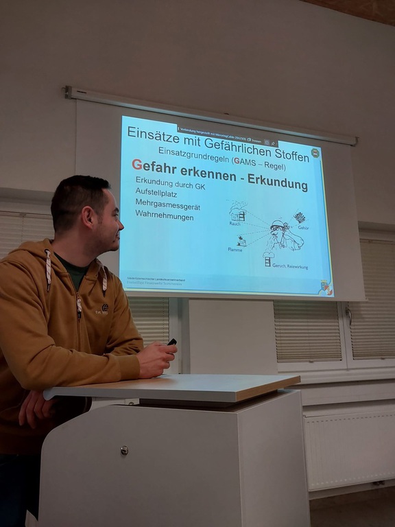 Zu Beginn gab es einen Theorie-Block, wobei die Grundlagen für Einsätze mit gefährlichen Stoffen, das Mehrgasmessgerät und die Nachschlagewerke Schadstoff erklärt wurden. Danach wurde mit dem