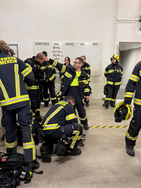 Nach einem kurzen Theorieblock zum Thema Atemschutznotfall, wurde die Übung praktisch durchgeführt. Ein Atemschutztrupp begab sich in den Brandraum, wobei ein Truppmitglied zu einem