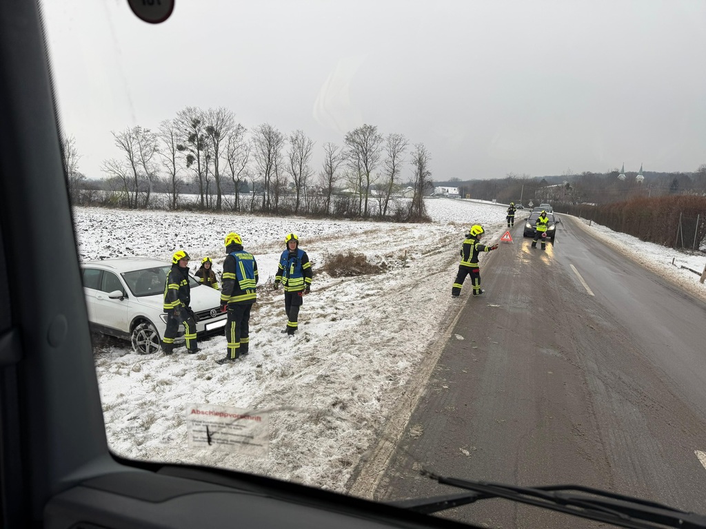 Aus unbekannter Ursache kam ein PKW von der Fahrbahn ab, schlitterte die Böschung hinunter und kam im Straßengraben zum Stehen. Dabei blieb der Lenker des Fahrzeuges unverletzt.