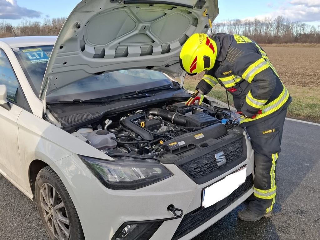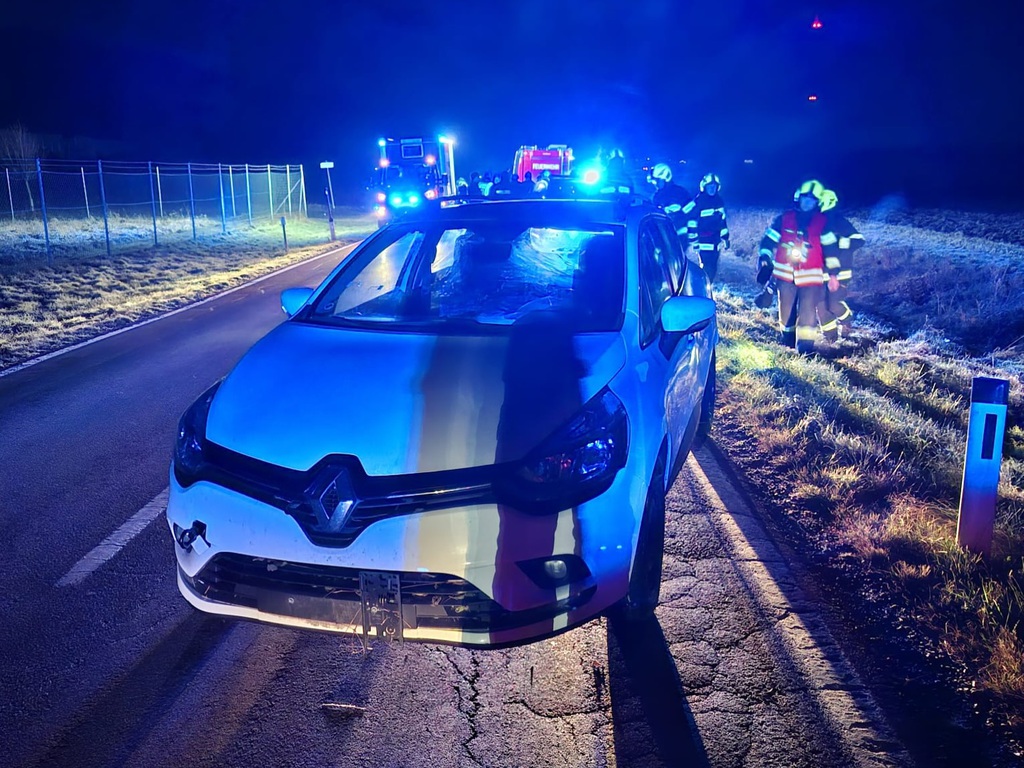 Nach einer Kollision zwischen einem PKW und einem Wild, kam das Fahrzeug auf der Fahrbahn zum Stehen und Betriebsmittel traten aus. Die Insassen des Fahrzeugs blieben dabei