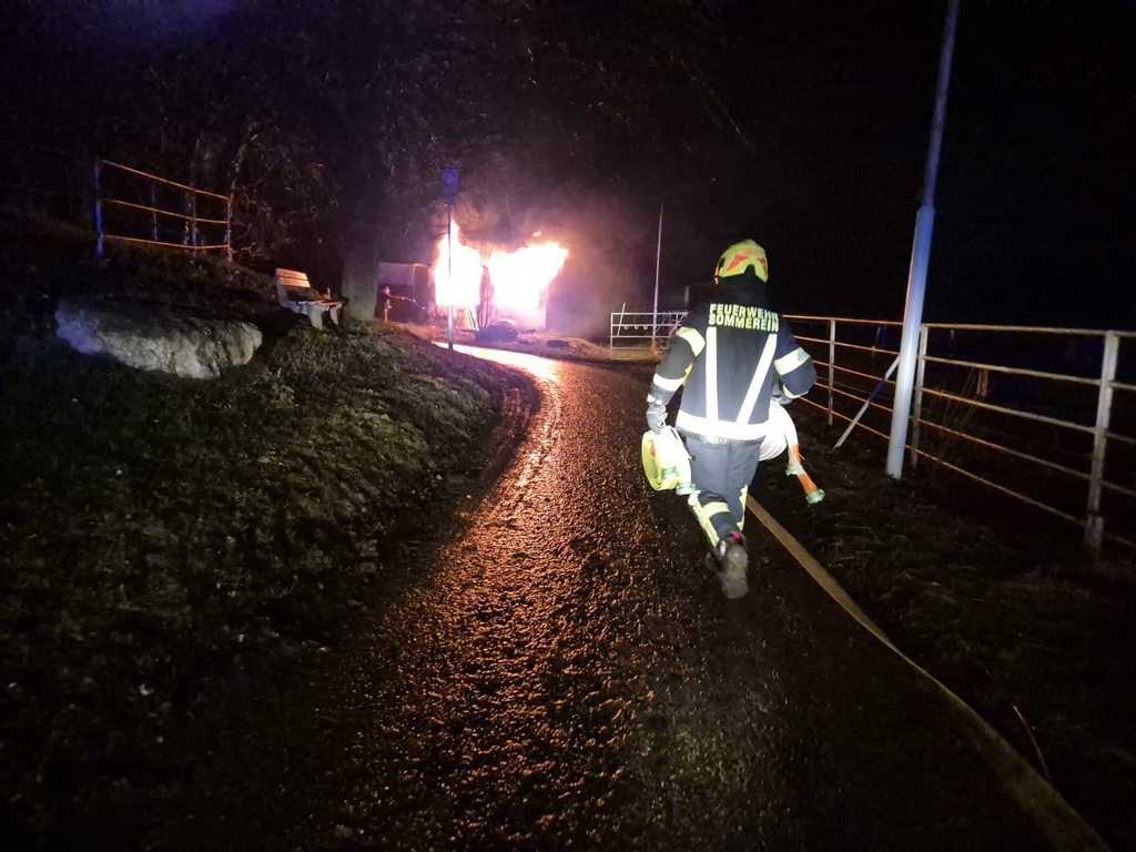 Heute Nacht wurden wir um 00:20 zu einem Brandeinsatz “B1-Rauchentwicklung” zu einem Reitstall zwischen Sommerein und Mannersdorf alarmiert. Bereits bei der Zufahrt wurde die