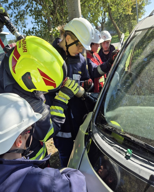 Um 08:30 wurde die "Einsatzbereitschaft" von unserem KDT HBI Lukas Zeiss symbolisch an die Feuerwehrjugend übergeben. Danach wurden Verhaltensregeln besprochen, Schlafplätze für die Übernachtung im Schulungsraum bezogen und die persönliche Schutzausrüstung der Jugendmitglieder, sowie alle Fahrzeuge samt Inhalt kontrolliert.