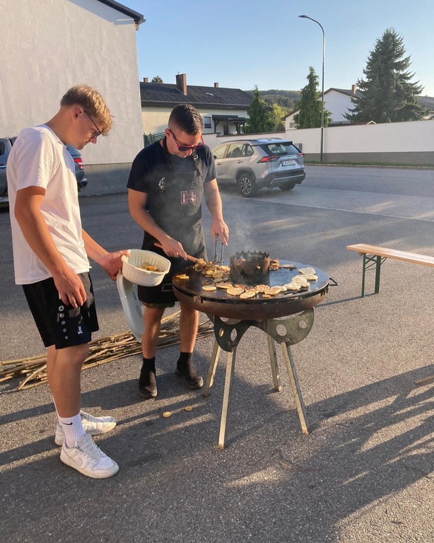 Gestärkt durch eine Nachmittagsjause, machte sich ein Teil der Gruppe am Weg in den Wald um Stecken zu suchen und der andere Teil half mit beim Aufstellen der Transparente für unsere Herbstgaude. Wieder zurück, gab es zum Abendessen eine Grillerei für alle.