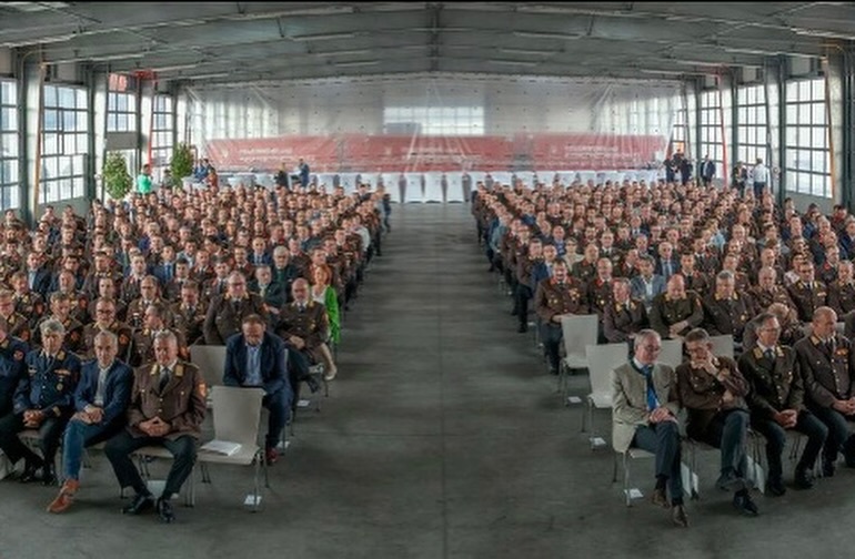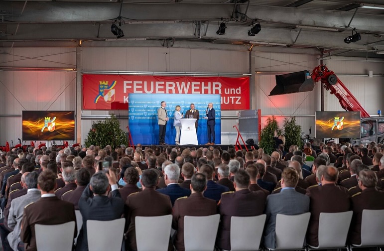 Jubiläum vom Niederösterreichischen Feuerwehrverband und Landeshauptfrau Johanna Mikl-Leitner in Tulln/Donau ab. Im Containerterminal des NÖ Landesfeuerwehrverbandes fand die offizielle Feier