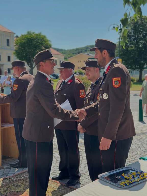 für die heurigen Jubiläums-Wehren statt. Danach ging es noch zum gemeinsamen Empfang.